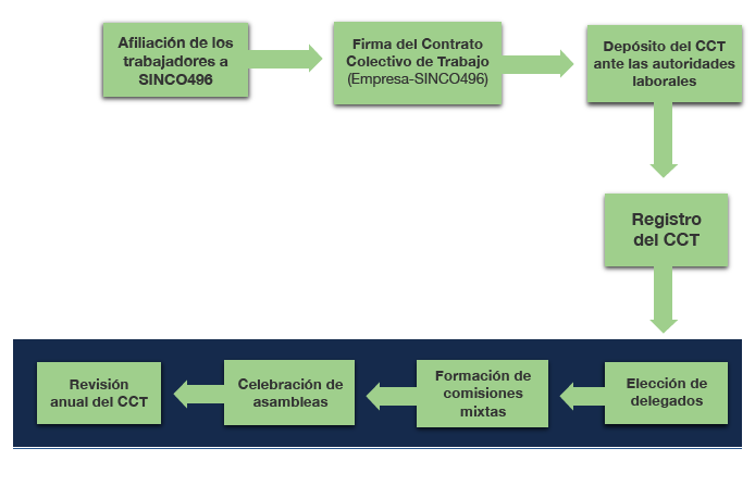SINCO496 es un sindicato local, lo cual le permite tener un mayor acercamiento con las empresas establecidas en el estado, conocer y entender su entorno y apoyarlas directamente para promover condiciones laborales favorables para los trabajadores. Asimismo participa activamente en la generación de propuestas y temas de interés para las empresas y sus empleados.