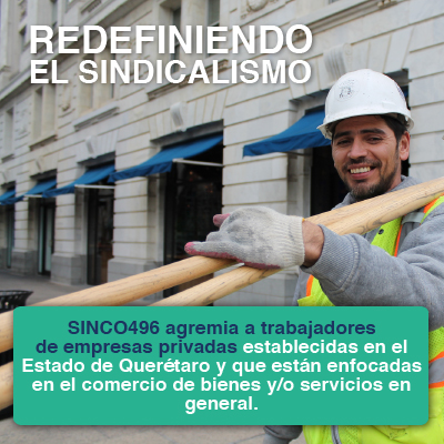SINCO496 agremia trabajadores del comercio en general que presten sus servicios en pequeñas, medianas y grandes empresas en el Estado de Querétaro